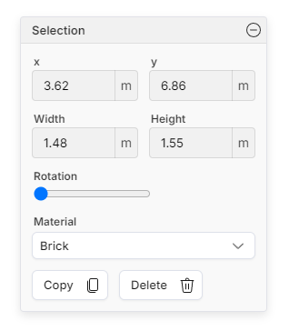 When an object is selected, you'll be able to finely adjust its properties, copy it, or delete it.