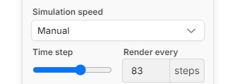 * **Render every** - this setting controls how many simulation steps are performed before the UI is updated. Increasing this setting may improve simulation speed if your device struggles to render the simulation quickly.