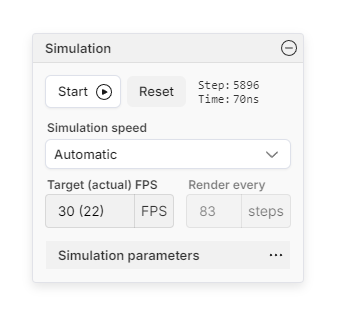 <figure><img src="https://58776923-files.gitbook.io/~/files/v0/b/gitbook-x-prod.appspot.com/o/spaces%2FrRIf4SV3WFkabUWKslD7%2Fuploads%2FEAZT86us2ZJZEOMPb1ii%2Fimage.png?alt=media&#x26;token=ff25359f-45c5-46a5-b10b-5dadb82137c7" alt=""><figcaption><p>The simulation parameters appear in a new control pane</p></figcaption></figure>