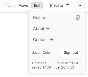 Changes are saved automatically as you make them. See when your changes were last saved from the menu in the navigation bar: